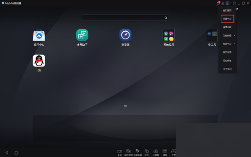 3、打开菜单栏后,点击设置中心。