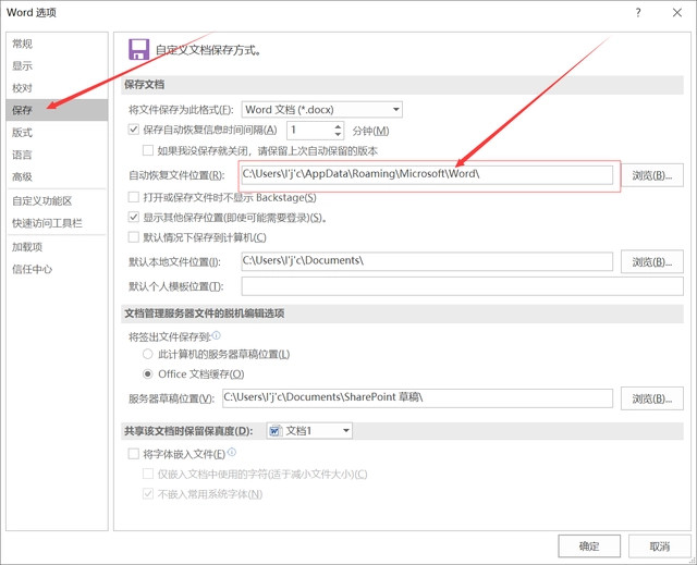 3、点击保存,找到自动恢复文件位置,将文件路径进行复制。