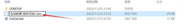 6、在文件中找到刚刚未保存的文件名,例如图中:“自动恢复”保存文档1.asd。