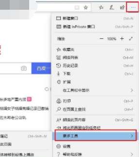 1、进入edge浏览器,点击右上角三个点依次打开 更多工具-使用Internet explorer打开 。