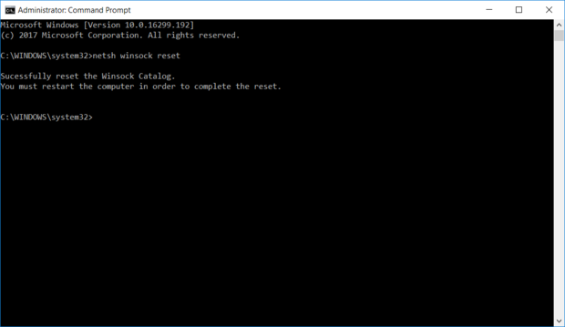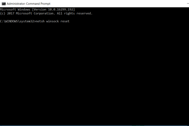 2、之后在“命令提示符”中输入“netsh winsock reset”并回车确认,如图所示。