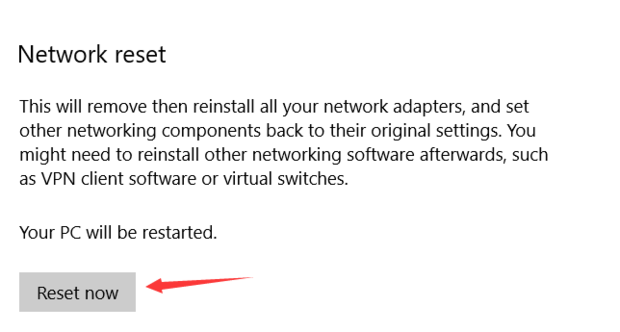3、之后选择“立即重置(reset now)”即可。如图所示。