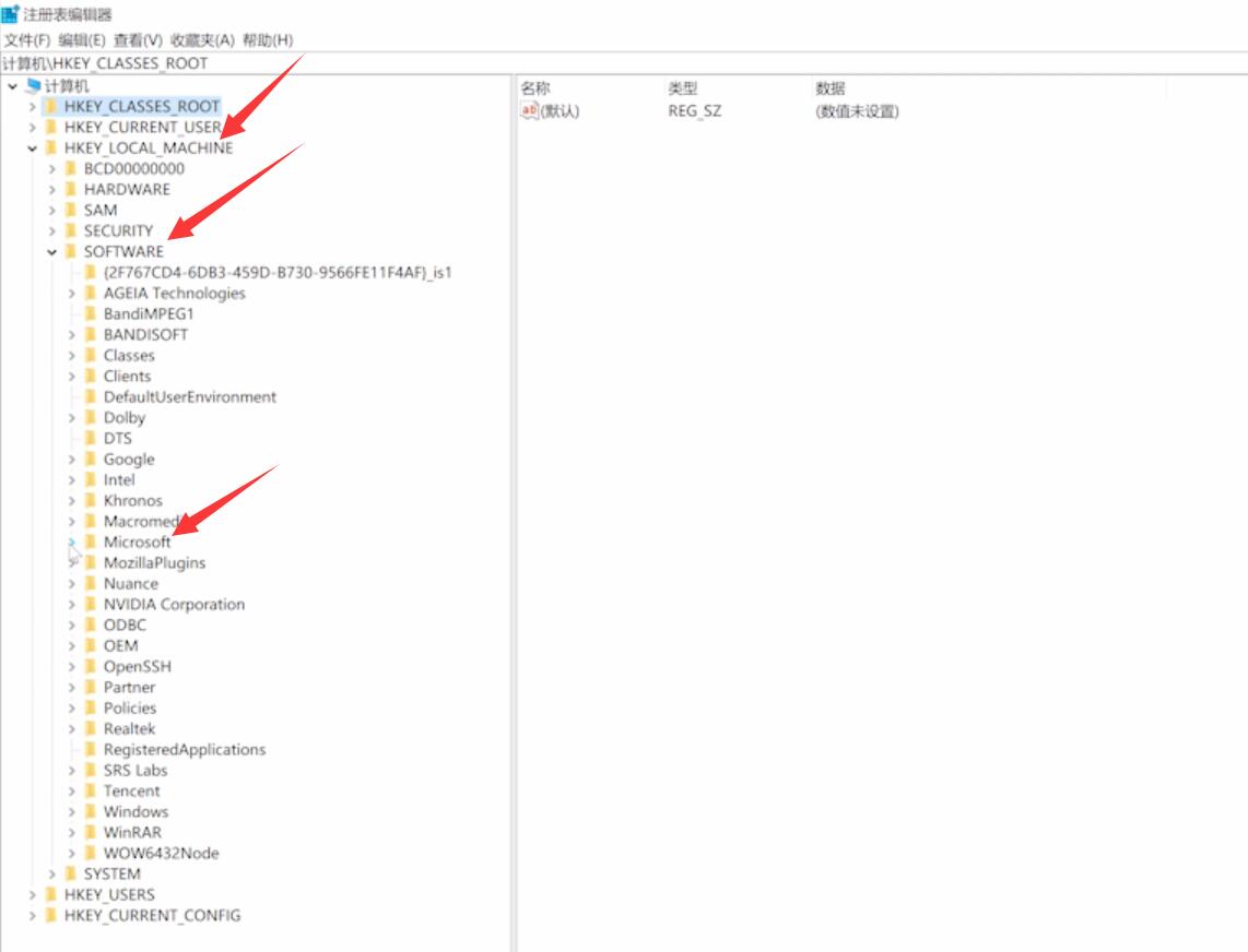 3、依次进入以下路径:HKEY_LOCAL_MACHINE/SOFTWARE/Microsoft/Windows NT/CurrentVersion(如图所示)。