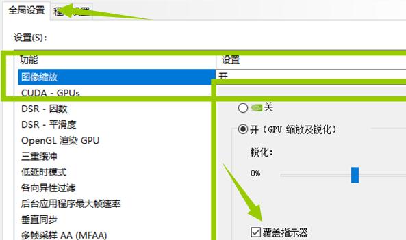 6、紧接着,在弹出的界面中,点击“图像缩放”,将其设置为“开启”并勾选“覆盖指示器”。