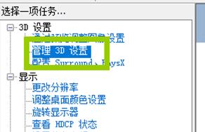 5、此时,设置完成后,打开到“NVIDIA控制面板”界面,再点击“管理3D设置”。