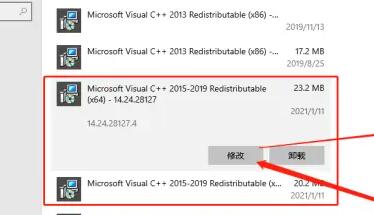 3、找到你安装的VC库,点击“修改”。