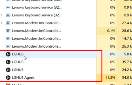 2、找到“lghub”有关的进程给终止。