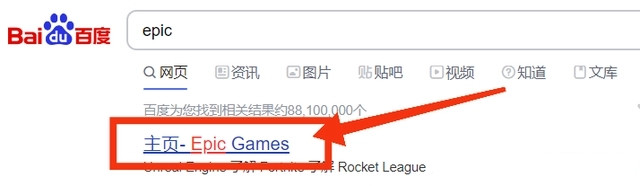 没有Epic客户端的玩家可以前往官网下载客户端,在搜索引擎中搜索Epic,点击进入epic官网。