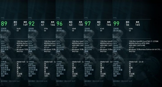 1、2133MHz平均89帧,4000MHz平均99帧。