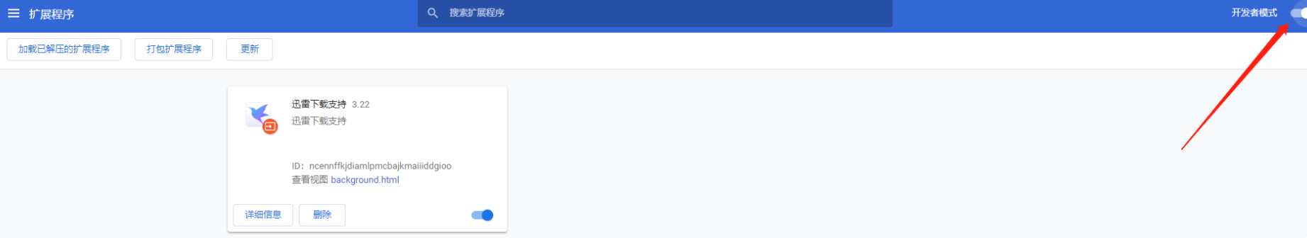 4、右上角有个开发者模式,点击启用就可以添加应用、拓展程序和用户脚本了。