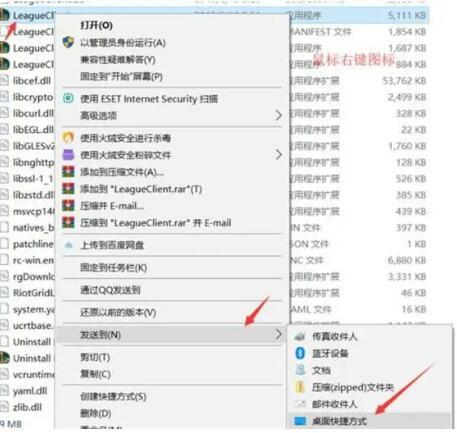 2、鼠标光标移至该文件上,创建游戏的快捷方式。