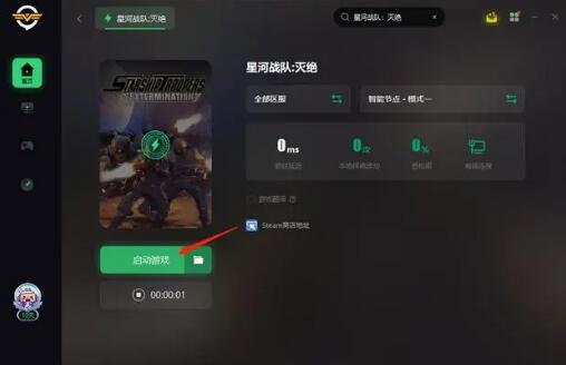 3、最后就可以点击启动游戏,进入到《星河战队:灭绝》中了,如果对于优化后的游戏延迟和丢包率等网络波动问题不满意,还可以在节点列表中挑选合适的线路,智能加速后再进入游戏,使得游戏过程更丝滑。