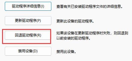 3、在驱动程序选项下,点击“回滚驱动程序”,退回完成后,重启应该就可以了。