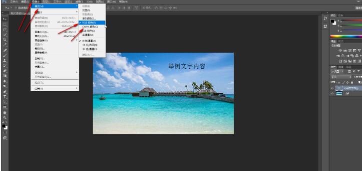 2、如果需要修改文字颜色却更改不了,就在“图像”选项卡中点击“模式”,在子选项中点击选择“RGB颜色”或者“cmyk 颜色”。