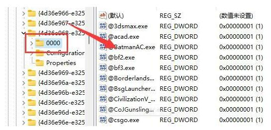4、进入“计算机\HKEY_LOCAL_MACHINE\SYSTEM\ControlSet001\Control\Class\{4d36e968-e325-11ce-bfc1-08002be10318}”