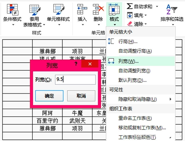 也可以调整部分列宽,只需要按住Shift键,依次选中要调整的列宽,按照上述操作方法,在弹出框中输入列宽值,然后点击【确定】即可(行高的调整方法和列宽的调整方法一样)。