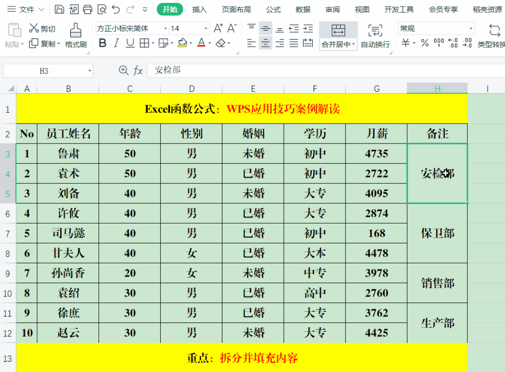 二、WPS技巧:填充合并单元格