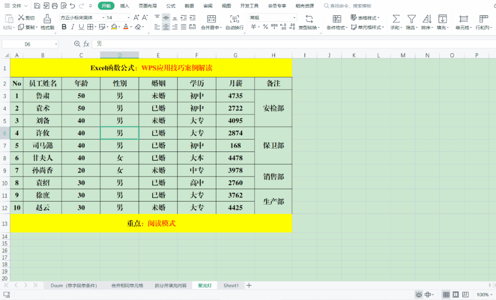 三、WPS技巧:开启聚光灯