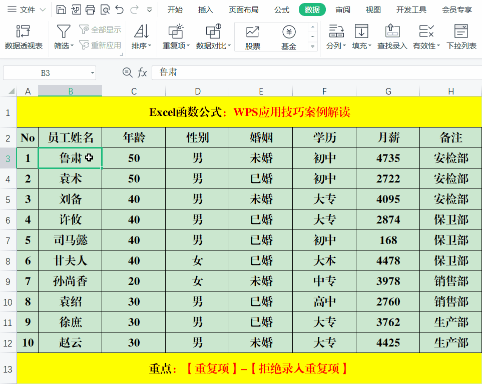 四、WPS技巧:拒绝录入重复值
