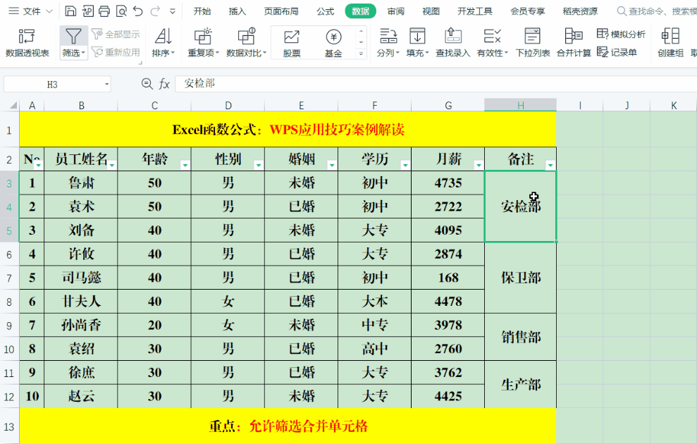 五、WPS技巧:筛选合并单元格