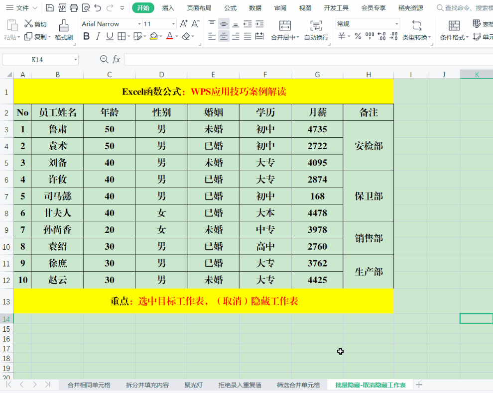 六、WPS技巧:批量显示/隐藏工作表
