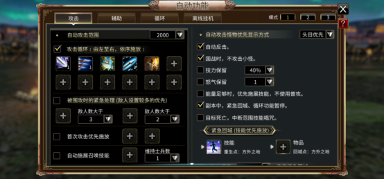 三国群英传M自动功能怎么设置点击“自动功能”按钮,玩家可进入自动挂机功能设置界面,玩家可在此界面中进行自动挂机功能的更改设置,还有离线挂机功能,玩家可以通过道具获得离线挂机时间,在下线时进行不间断的打怪升级,获得经验和道具。