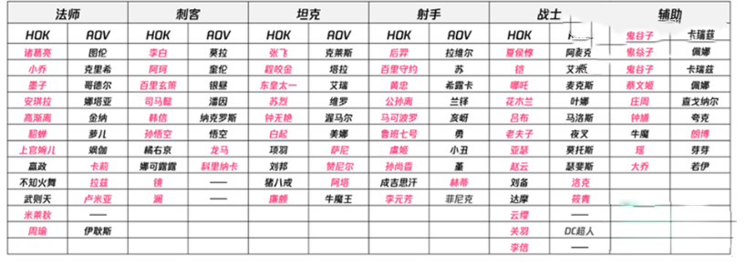 王者荣耀亚运版本比赛服——英雄列表(注意:亚运版本将采用以下标红的英雄形象)。