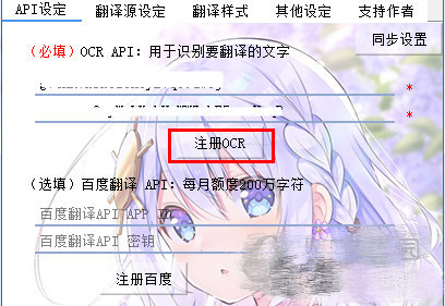 然后我们选择【API设定】点击注册OCR。即可进入推荐的百度API注册页面。打不开页面也可以前往【各种API注册教程】文件夹来查看教程。