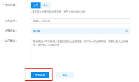 3、进入创建信息填写页面,内容可以随意填写,注意产品服务一定得是文字识别,不要注册到语音技术或者其他东西了。