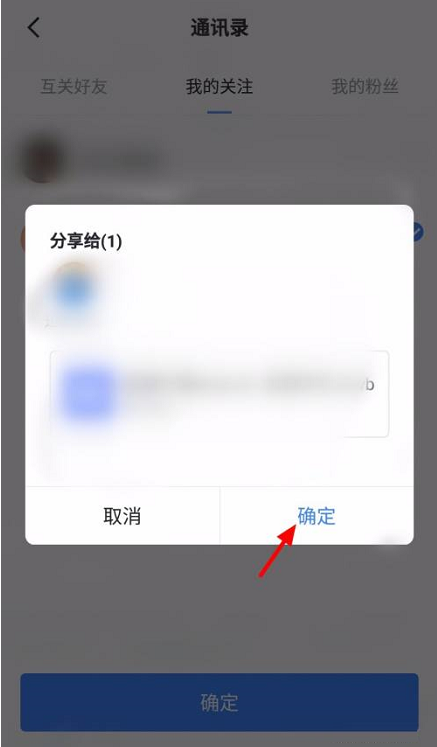 6、在分享给页面,点击确定,这样就分享给好友成功了。