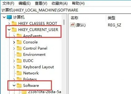 进入“计算机\HKEY_CURRENT_USER\Software”。