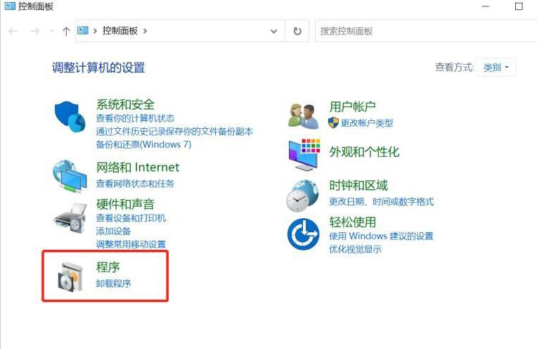1、在windows中打开【控制面板】,然后点击【卸载程序】。