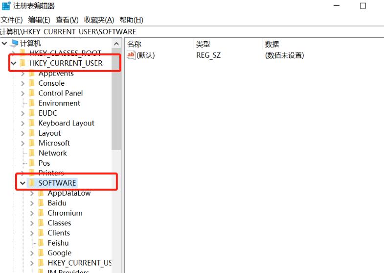 3、然后在【HKEY_CURRENT_USER】目录下找到【software】。