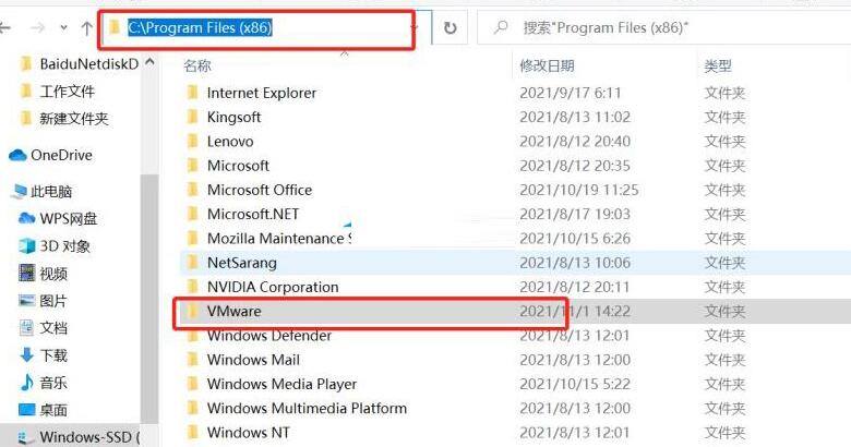 5、打开【我的电脑】,在C盘的Program Files(x86)文件下找到VMwar文件,然后删除。