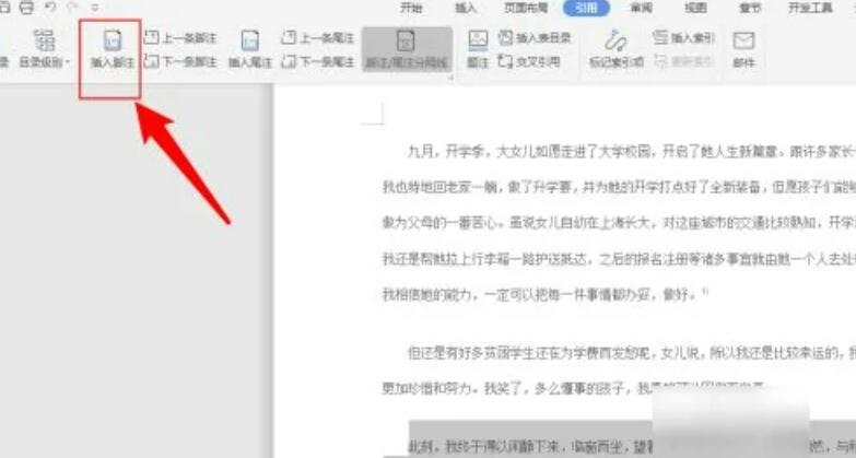5、然后再点击脚注。