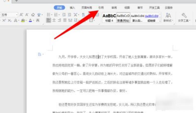 2、随后点击菜单栏里的引用选项。