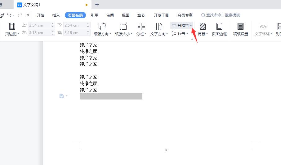 1、在文档中将光标移到正文第3页底部。