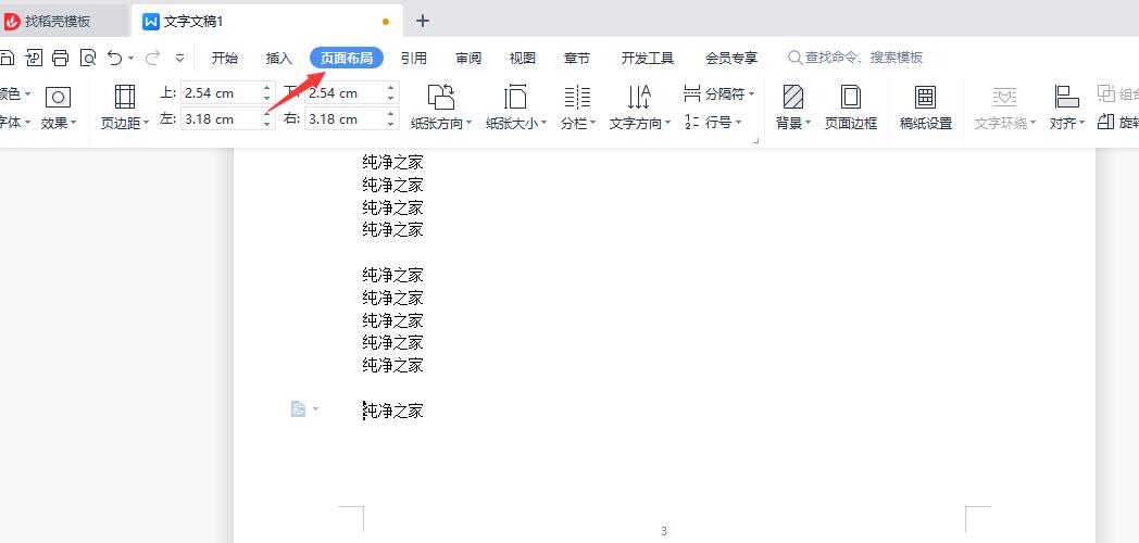 2、在文档页面,直接单击页面布局。