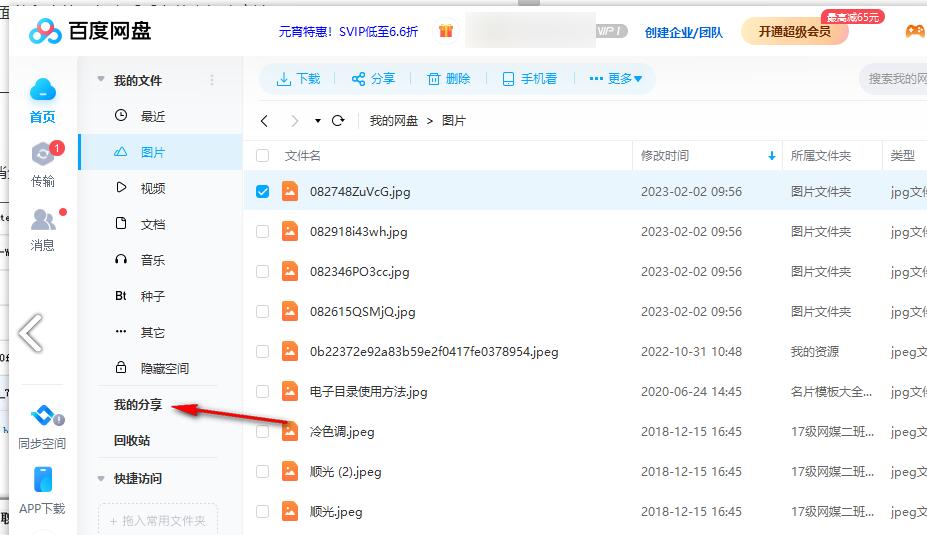 4、在【我的分享】那里进行点击之后进入到页面中。