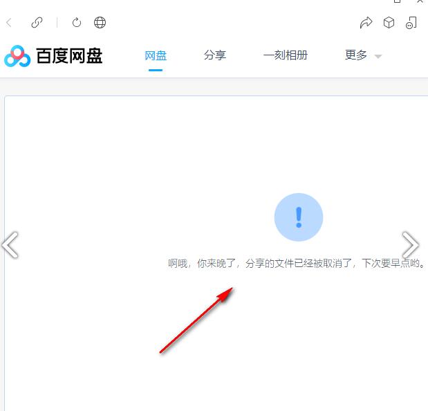 7、这时当对方再次打开你分享的链接之后,就会在弹出的页面上显示分享的文件已经被取消的提示,如图所示。