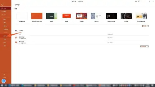 进入到ppt的程序界面后鼠标左键单击上方的文件选项卡。