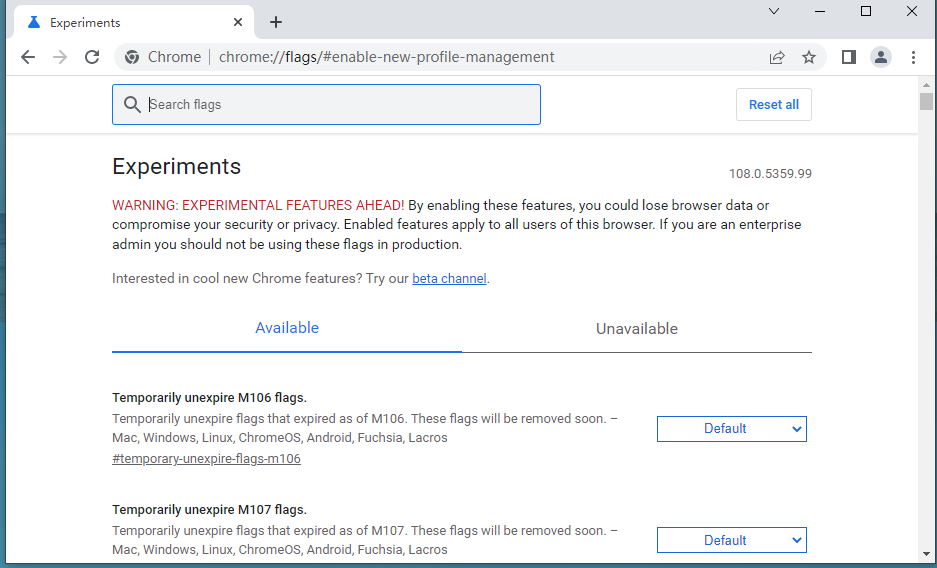 2、在地址栏输入:chrome://flags/#enable-new-profile-management,如图所示。