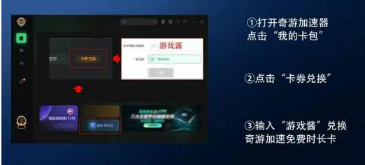 2、按照如下教程在卡包内输入【游戏酱】还能领取免费加速时长。