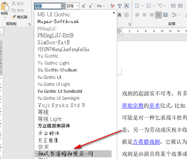 5、打开字体选项之后,在下拉列表中就能找到自己刚刚安装好的字体了。
