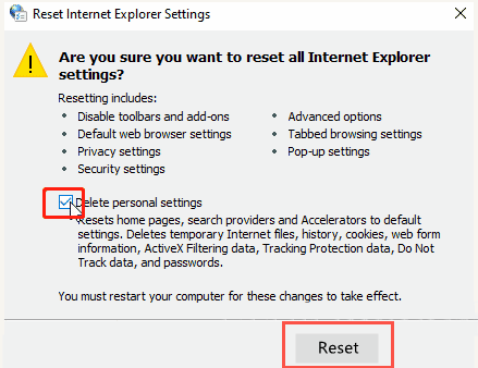 3、点击勾选【删除个人设置】,再点击【重置】按钮;