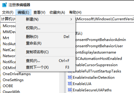 2、在打开的注册表编辑器中,在上方找到“编辑”选项,点击编辑按钮在出现的列表中找到“查找”按钮。