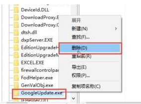 4、在查找到的文件中找到“GoogleUpdate.exe”并右击,在出现的列表中选择“删除”。