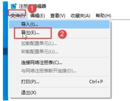 6、删除注册表有一定风险,点击上方注册表中“文件”,在出现的列表中选择“导出”,这样就可以将文件备份起来。