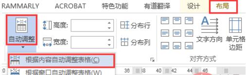 选择表格,点击【布局】-【自动调整】-【根据内容自动调整表格】,即可。
