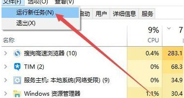3、接着在打开的任务管理器窗口中,依次点击“文件/运行新任务”菜单项。